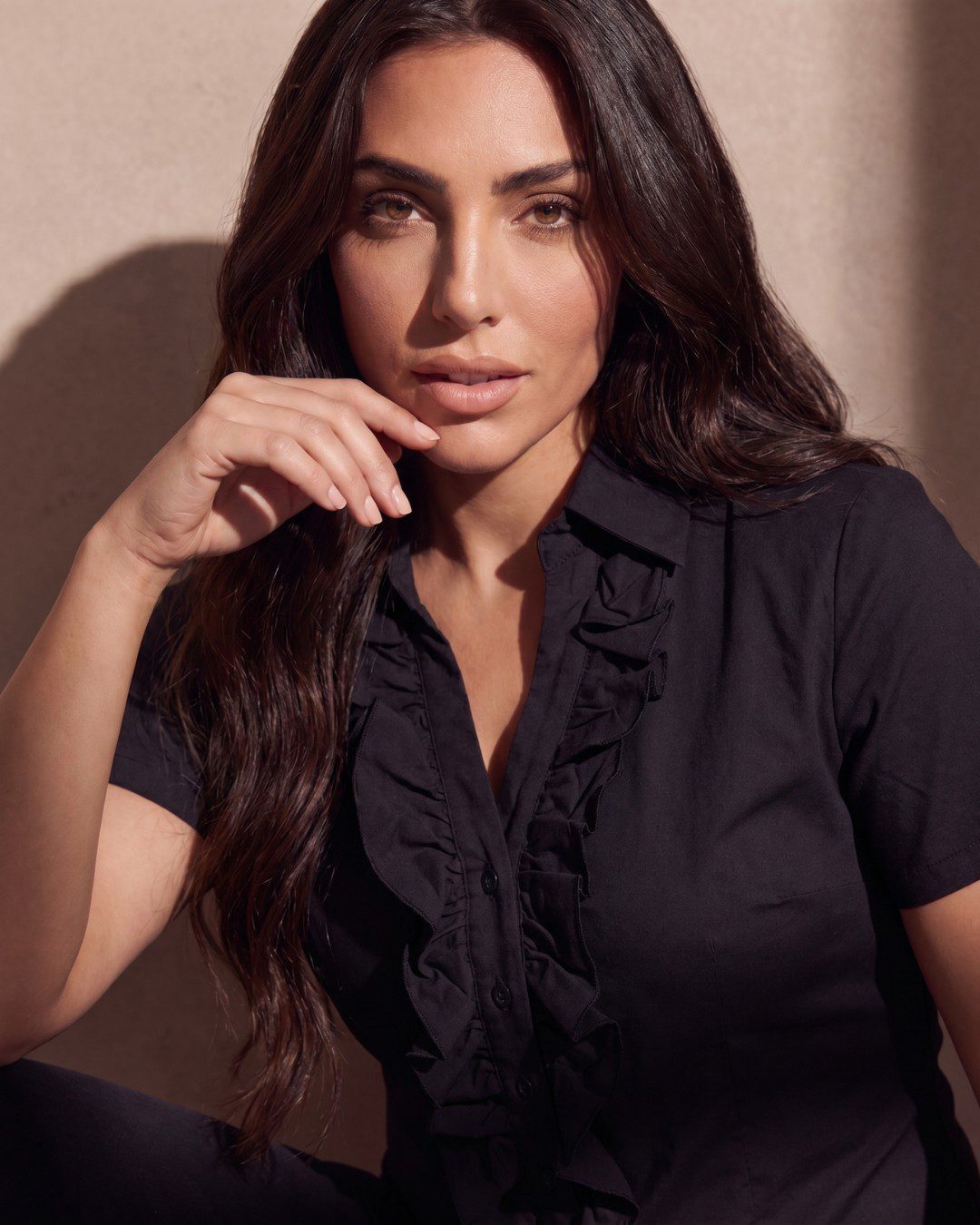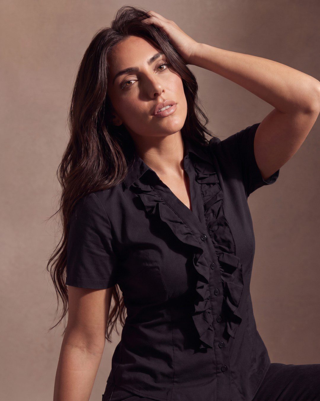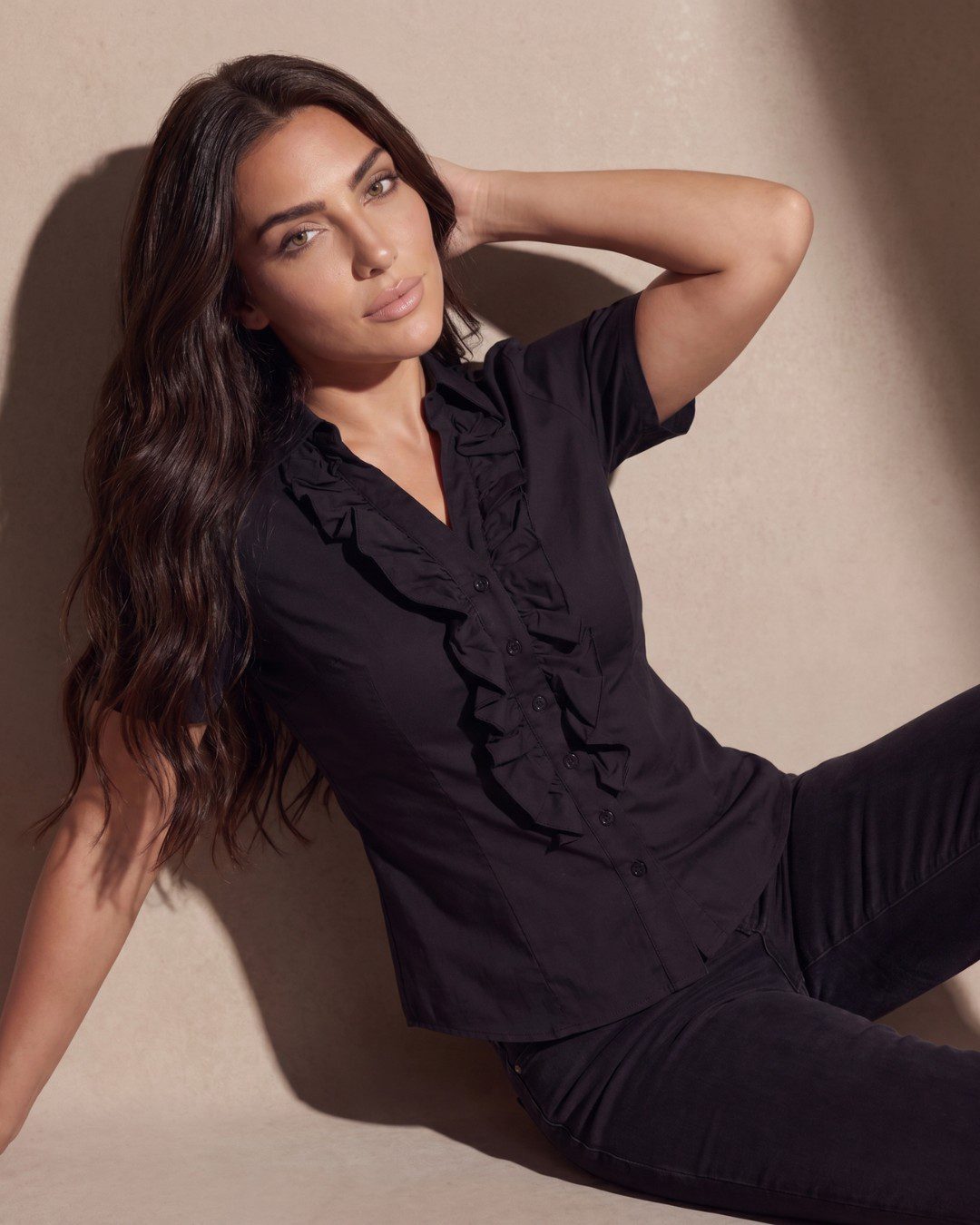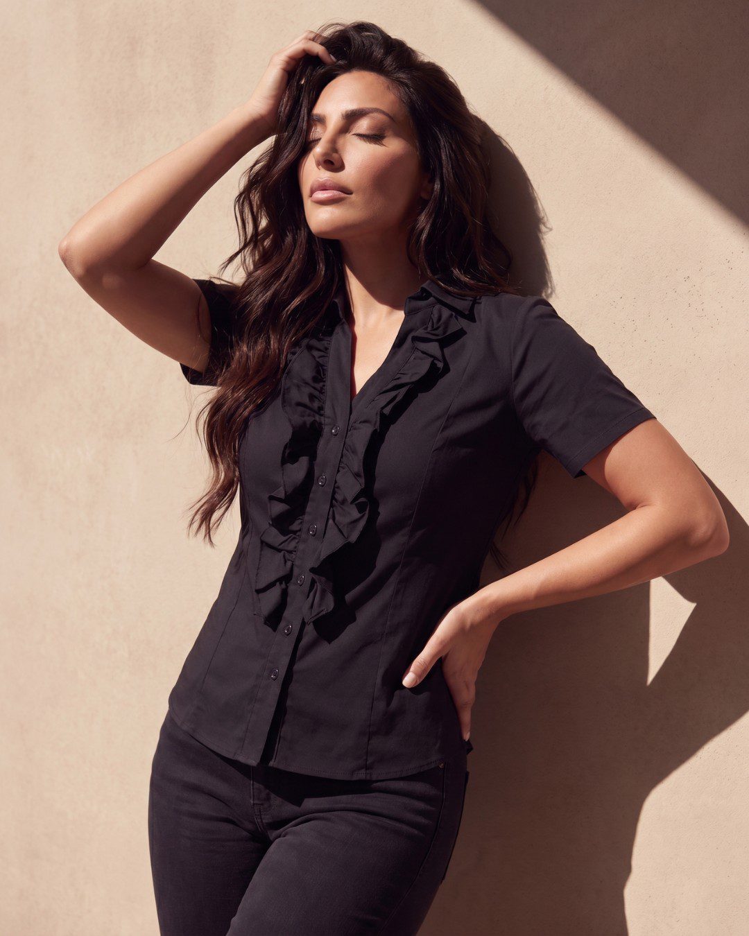 Ένα πουκάμισο που εκπέμπει θηλυκότητα και κομψότητα! Η ρομαντική λεπτομέρεια των βολάν στο μπροστινό μέρος μετατρέπει το κλασικό πουκάμισο σε statement κομμάτι που ξεχωρίζει. Η V-λαιμόκοψη επιμηκύνει τη σιλουέτα, ενώ η fitted γραμμή κολακεύει τις καμπύλες σου.
