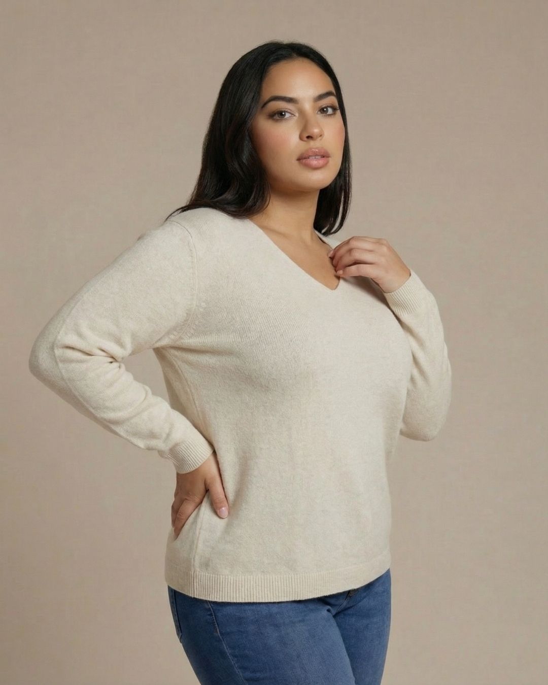 Πλεκτή φαρδιά μπλούζα με V λαιμόκοψη εύκολη για κάθε μέρα.