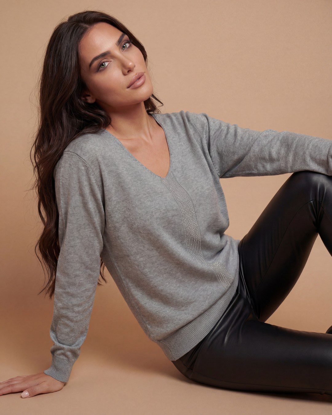 • Κομψή V λαιμόκοψη με λαμπερά στρας