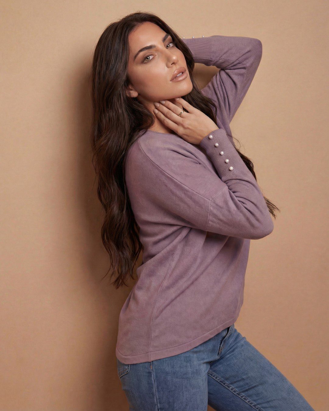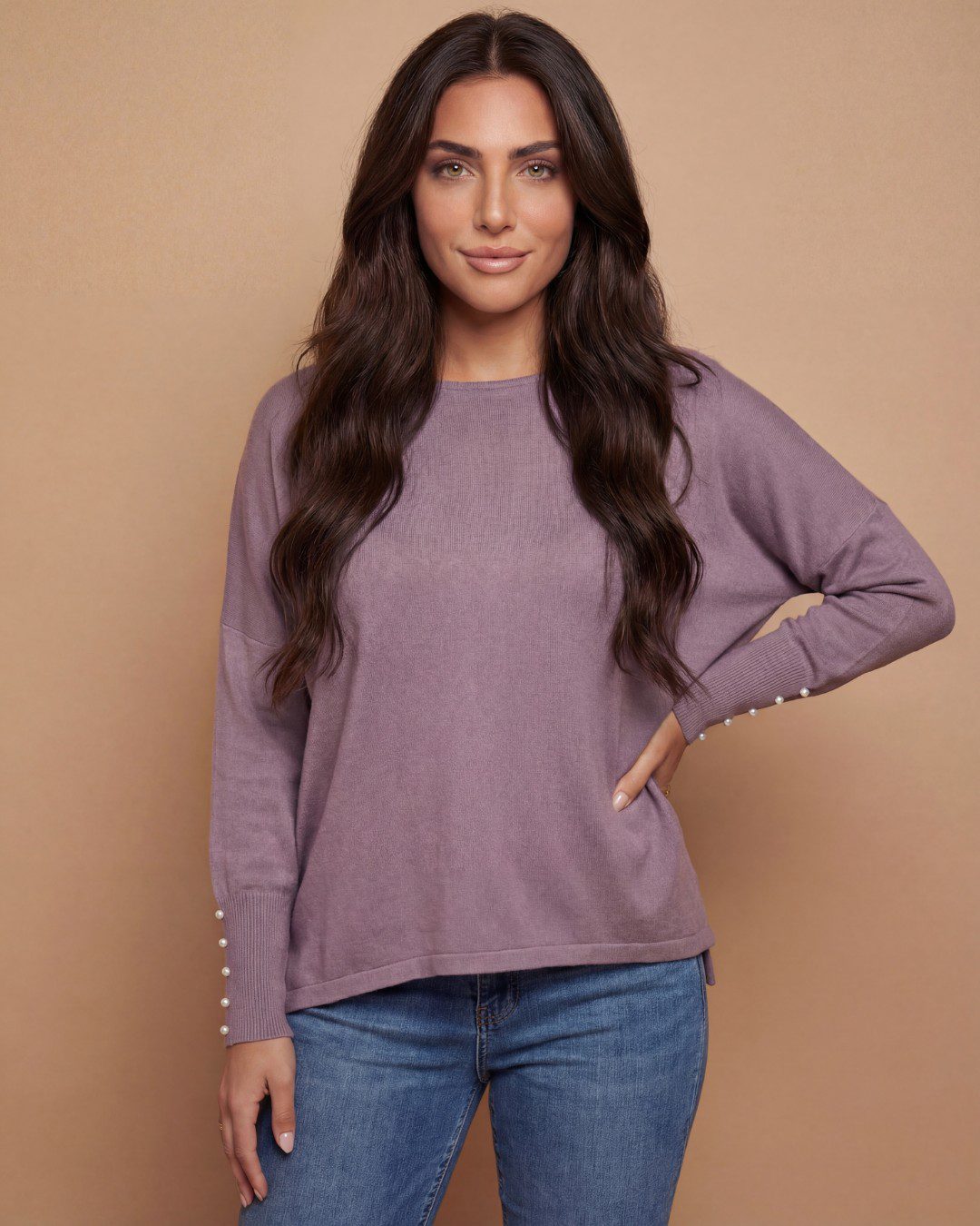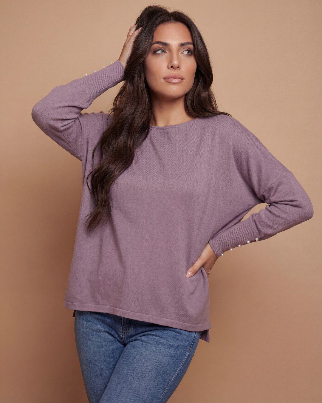 • Μακριά μανίκια με διακοσμητικά κουμπιά-πέρλες